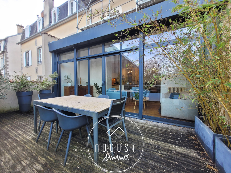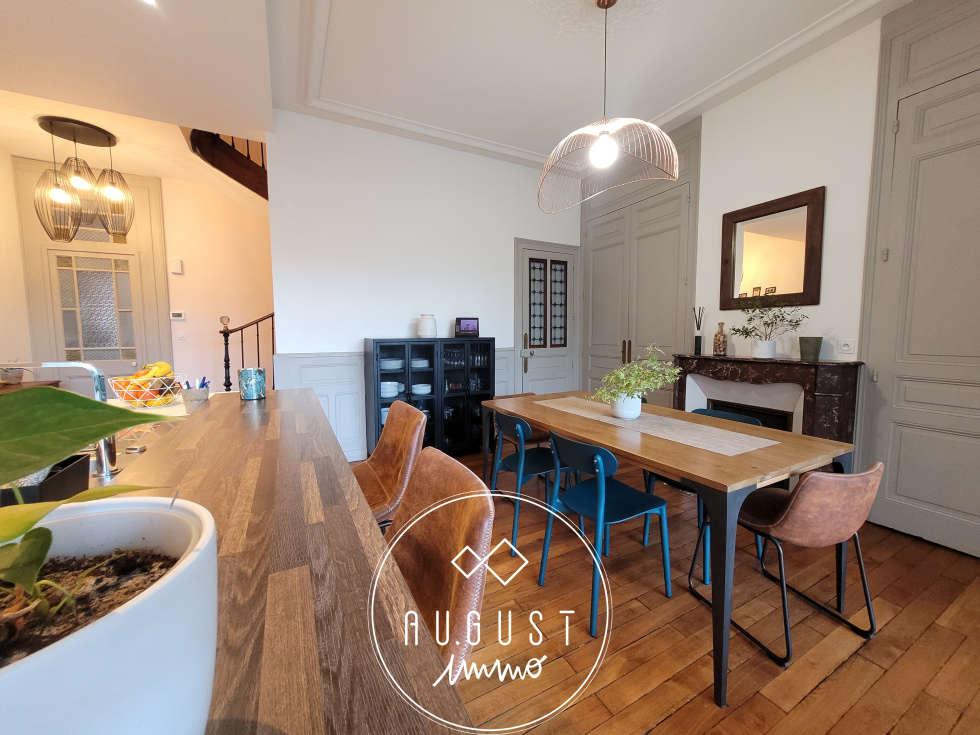 Exclusivité Limoges Saint-Surin : August est particulièrement fier de vous présenter cette magnifique maison bourgeoise de plus de 195m², au coeur du quartier recherché de St-Surin/ Winston Churchill. Dès votre arrivée, vous serez forcément séduits par les volumes d'un salon de lecture (20m²) et d'une pièce de vie comprenant salle à manger, cuisine ouverte sur salon et extension vitrée donnant sur une terrasse , d'un total de plus de 60m². Un wc complète ce rez-de-chaussée. Au premier niveau, vous découvrirez, de part et d'autre d'un somptueux escalier, 2 chambres de 17 et 14m², un bureau, un wc , une salle de bains et un dressing commun. Au second niveau, la même disposition vous permet d'obtenir également 2 autres chambres de 18 et 16m², un bureau , une deuxième salle de bains , un dressing et un wc , le tout ayant gardé ses parquets d'origine, ses somptueuses cheminées marbrées, et ses belles hauteurs sous plafond. Au sous sol (complet), vous attendent une partie buanderie,une cave à vin et un atelier. Enfin,à l'arrière, et pour le plus grand bonheur de chacun, un magnifique jardin de ville d'environ 130 m² totalement paysager, sans vis à vis direct, permettra de recevoir famille et amis à l'abri des regards. Une place de parking, couverte, idéale pour un véhicule, est également proposée dans la résidence juste en face de cette belle demeure. Un produit rare dans un lieu recherché, à quelques pas des rues piétonnes, c'est un petit bijou qui vous attend !