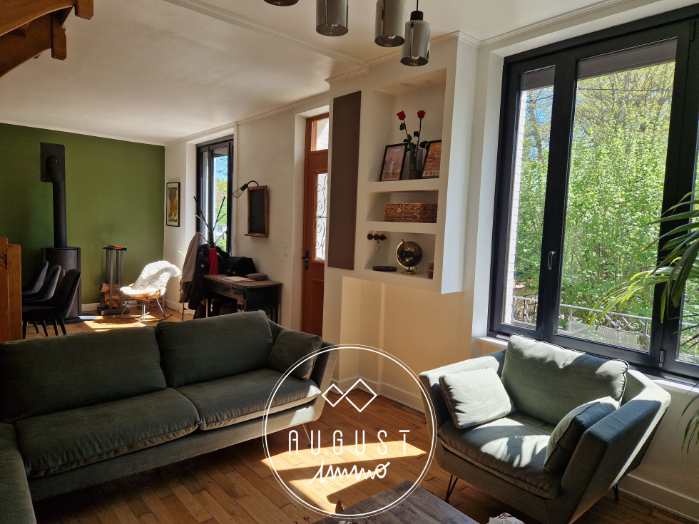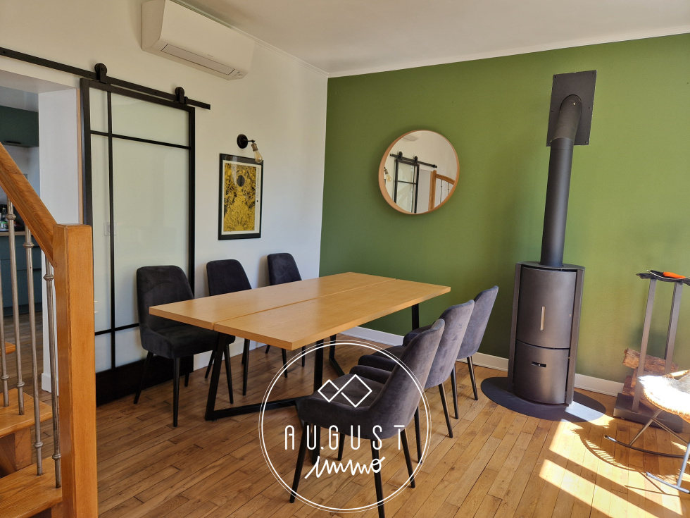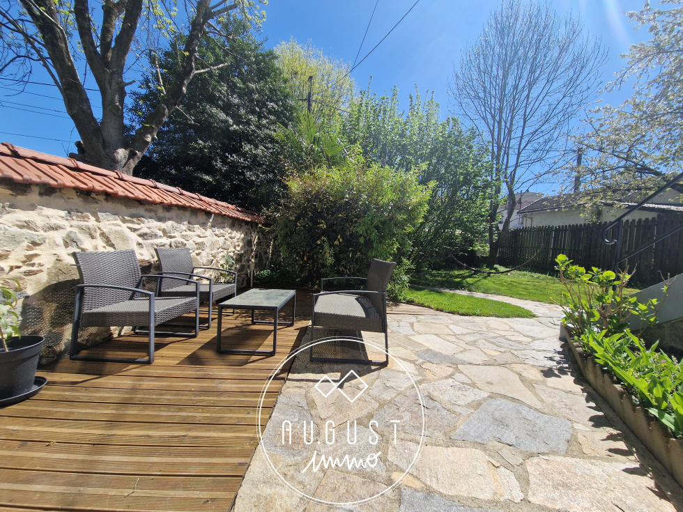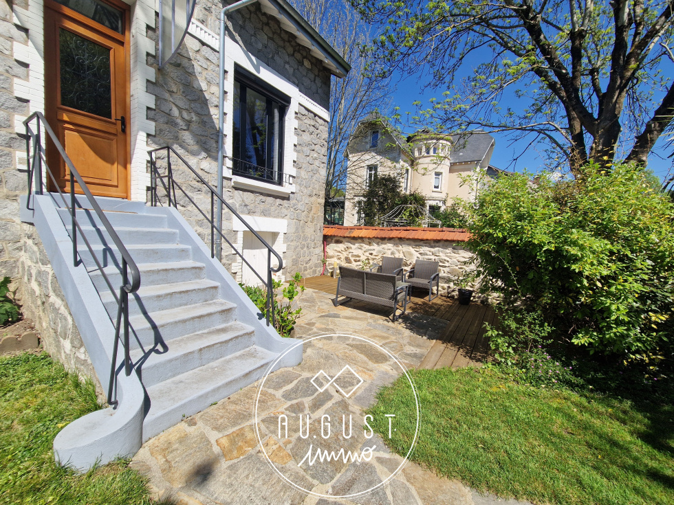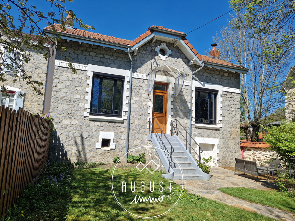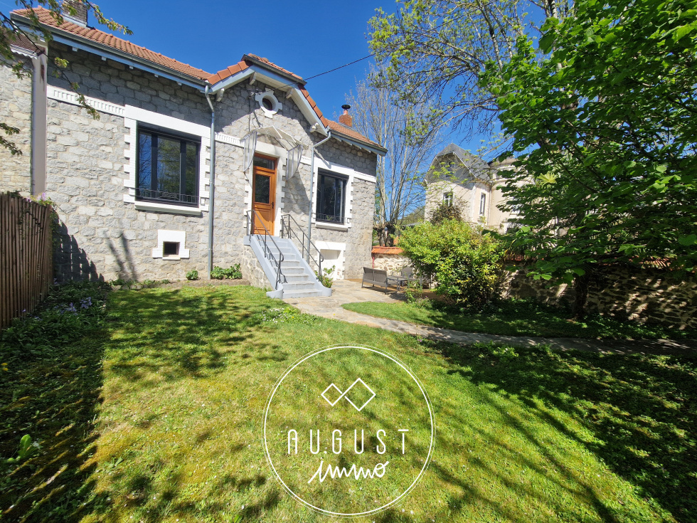Exclusivité Limoges Aristide Briand : AUGUST est très heureux de vous présenter cette magnifique petite maison des années 30 dans un état impeccable. Proche des commodités, ce bien , rénové avec gout ,conviendra pour une personne seule ou un couple. En retrait de la rue, cachée derrière un jardin arboré de 200m², et traversé par un ru adorable, cette maison vous séduira par son esthétisme et ses belles prestations : dès l'entrée, vous voilà plongé dans un magnifique séjour/salon de plus de 35m², avec pöele à bois et climatisation reversible, et qui annonce déjà une charmante cuisine neuve toute équipée. Un accès direct sur une terrasse arrière vous permettra ainsi de profiter d'un second extérieur. Une salle d'eau contemporaine en parfait état , et son wc ,complètent ce niveau. A l'étage, un plateau original dessert un bureau ouvert , une belle chambre et une petite chambre, plus cosy. Une cave sous toute la maison permet stockage et cave à vin. Cette maison plaira à tous les amoureux de la pierre et de l'architecture travaillée des années folles.